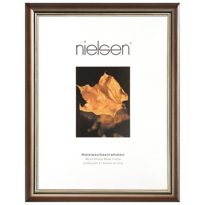 Der Holz-Rahmen Nielsen Ascot genügt höchsten Ansprüchen. Denn er strahlt durch seinen zarten Goldrand eine natürliche Eleganz aus. Die raffinierte Komposition aus Holz und Gold lässt z. B. Portraits besonders zur Geltung kommen.