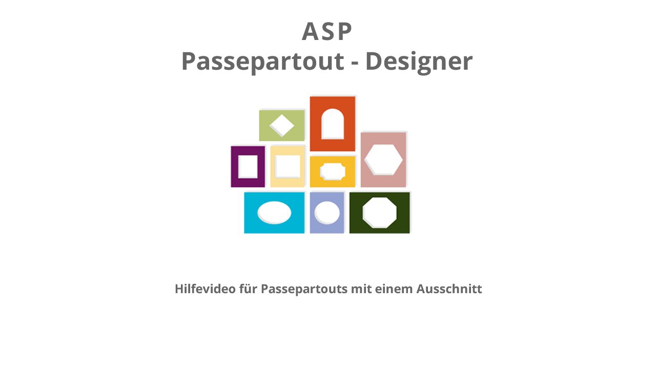 In dem ersten Hilfevideo zeigen wir Ihnen, wie Sie mit dem ASP Passepartout-Designer ein Passepartout mit einem Ausschnitt nach Ihren Vorstellungen visualisieren und anschließend bestellen können. Den Passepartout-Designer für einen Ausschnitt finden Sie hier.